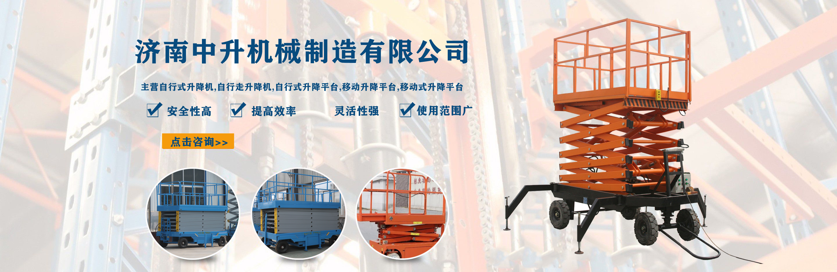 濟南中升機械制造有限公司主營自行式升降機,自行走升降機,自行式升降平臺,移動升降平臺,移動式升降平臺等產(chǎn)品,產(chǎn)品廣泛用于廠房維護、工業(yè)安裝、設備檢修、物業(yè)管理、倉庫、航空、機場、港口、車站、加油站、體育場、展覽館等多種行業(yè)和場所, 公司設備精良、工藝合理、檢測手段齊全,技術力量充足,公司創(chuàng)立伊始即本著“專注、專心”的經(jīng)營理念,依托技術團隊優(yōu)勢和設備硬件保障,全力打造良心的升降平臺企業(yè)。 我公司始終以“品質(zhì)為本,服務至上”作為企業(yè)宗旨。只要你訂購了我公司的產(chǎn)品,無論你身處何方,我們都會及時派出技術人員為你服務!...